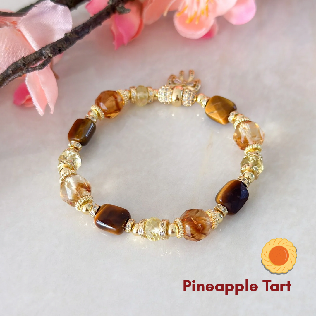 Inspired by the CNY goodies we grew up loving — bak kwa, kueh bangkit, sesame cookies and pineapple tarts — this collection turns festive flavours into wearable little joys for the season.