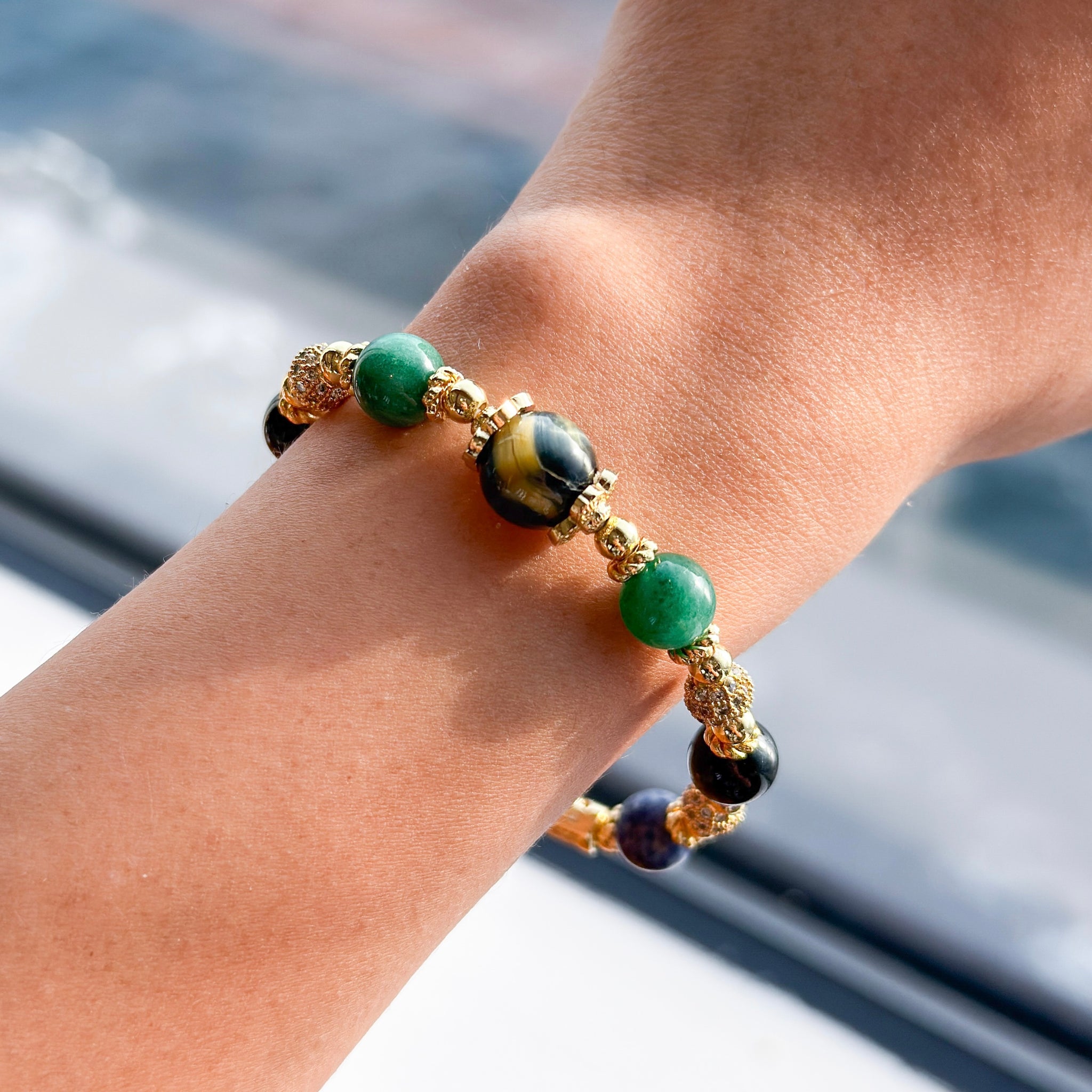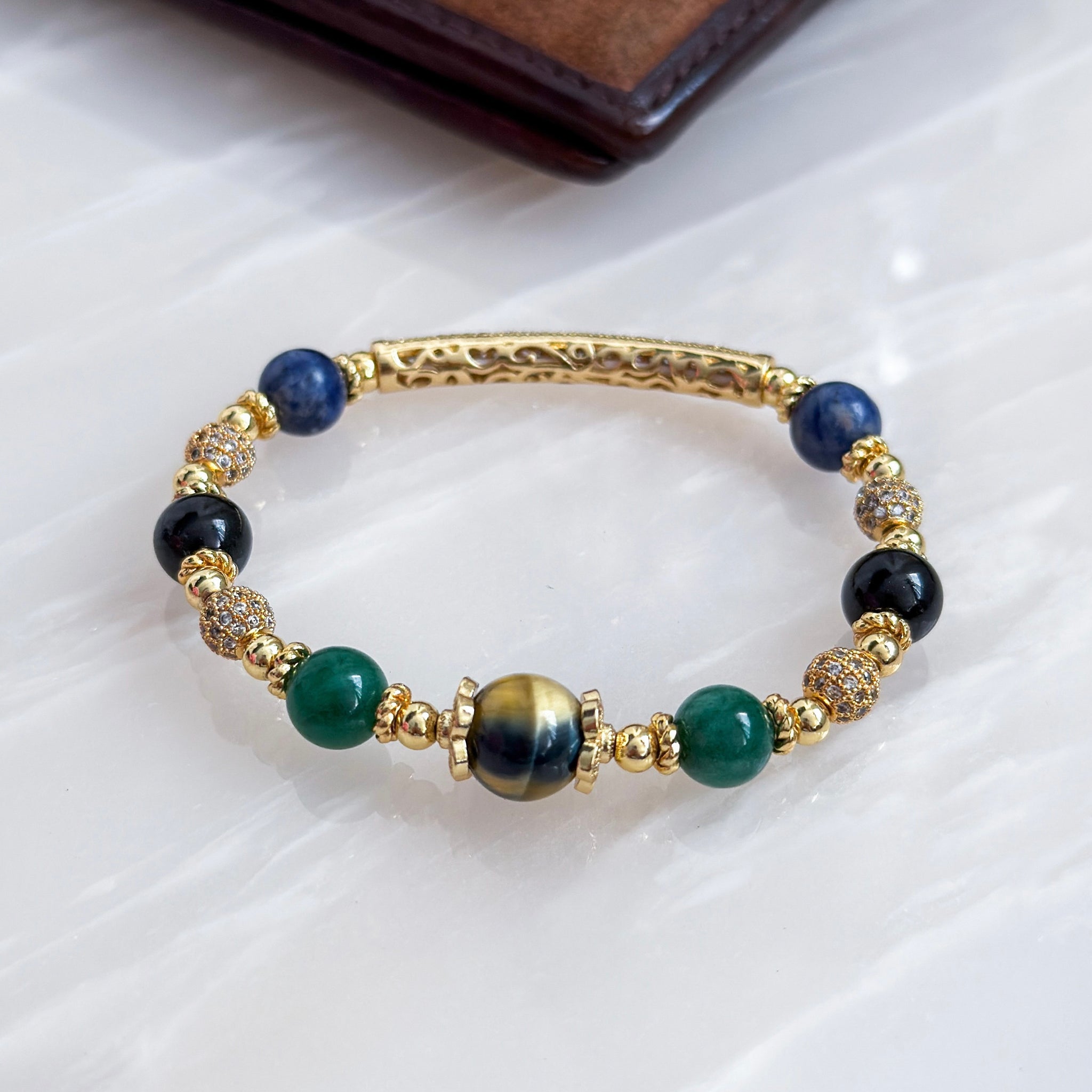 • Golden Blue Tiger Eye – Boosts confidence, focus, and motivation while stabilising emotions.