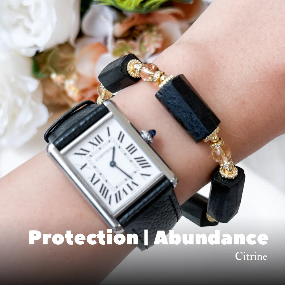 Embrace the shielding force of Black Tourmaline, the ultimate guardian stone known for protecting your aura from negativity, stress and emotional drain. Paired with Citrine, this combination not only blocks out limiting energy but also opens the pathway to success, prosperity, and radiant optimism.
