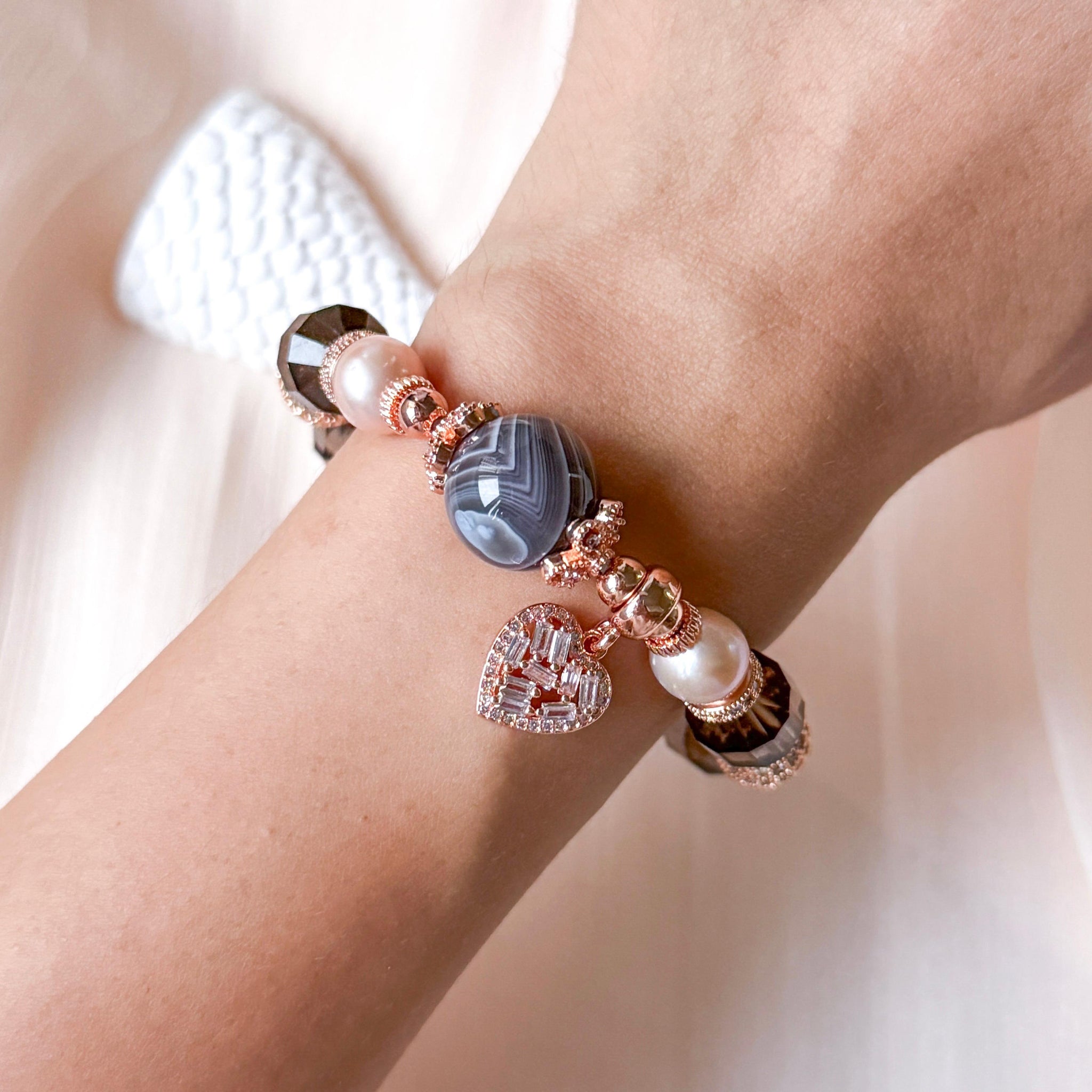 Botswana Agate: Grounding and soothing, balances emotions and intellect, boosts confidence, and encourages self-awareness.